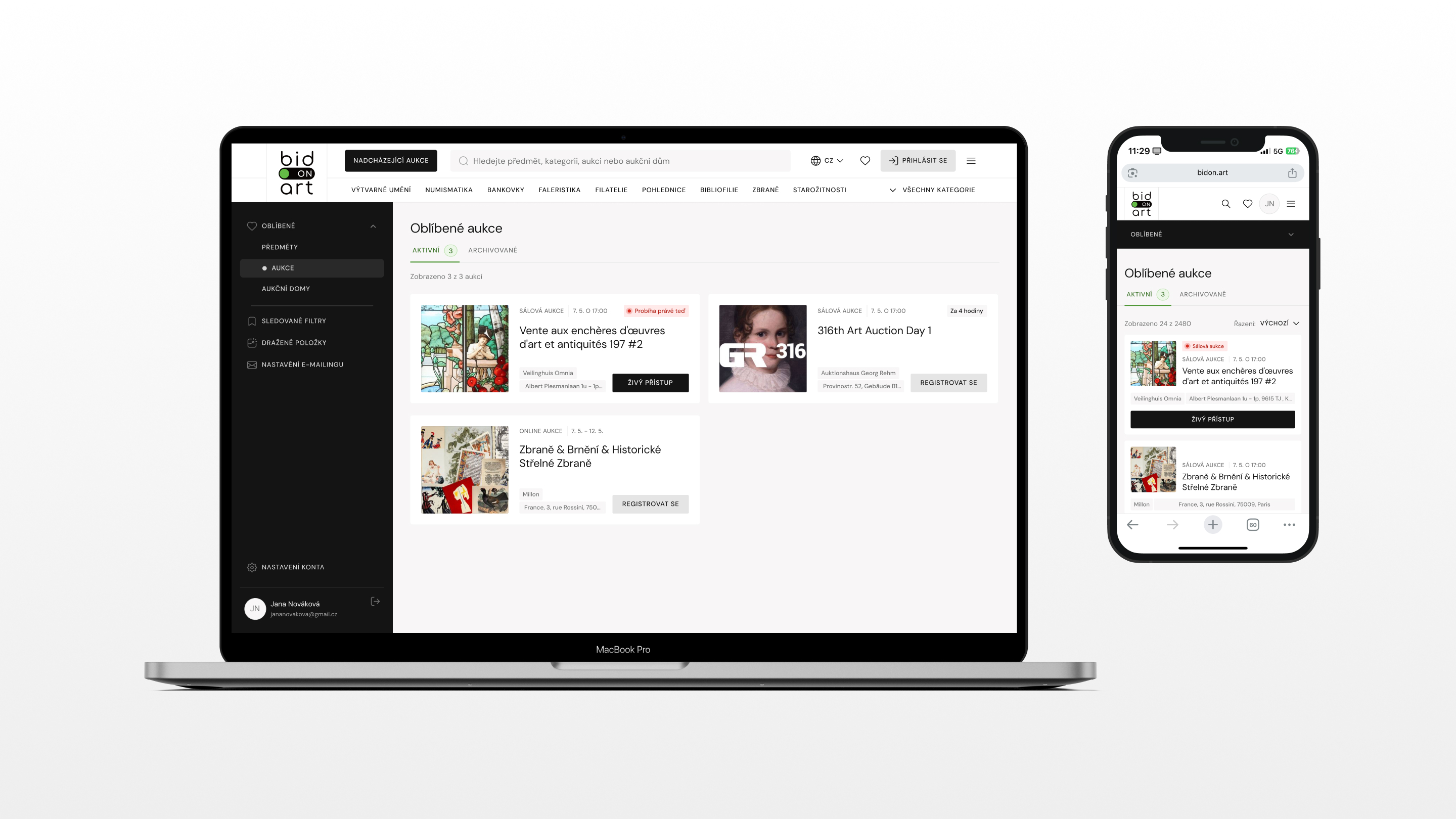 Na straně sběratelů je situace podobně frustrující. Sledují desítky aukcí, registrují se na různých webech a spoléhají na nepřehledné newslettery. Transparentnost příhozů, upozornění na zajímavé položky nebo možnost nastavit si vlastní limity jsou často řešeny nedokonale – nebo vůbec. Naším úkolem bylo tyto světy propojit tak, aby platforma sloužila oběma stranám, nikoli jen provozovateli systému.